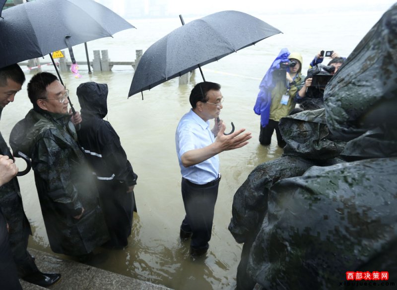 李克強(qiáng)冒大雨在武漢長江干堤現(xiàn)場指揮搶險(xiǎn)救災(zāi)