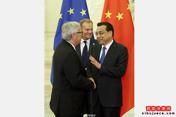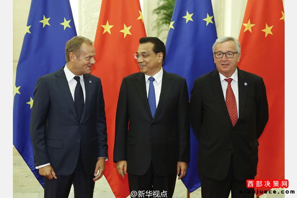 新華網北京7月12日電國務院總理李克強12日下午與歐洲理事會主席圖斯克、歐盟委員會主席容克共同主持第十八次中國歐盟領導人會晤。雙方就鞏固中歐政治互信、穩(wěn)步落實合作共識、加強國際和地區(qū)事務中的溝通與協(xié)調等深入交換意見。(據(jù)新華社“新華視點”微博報道)