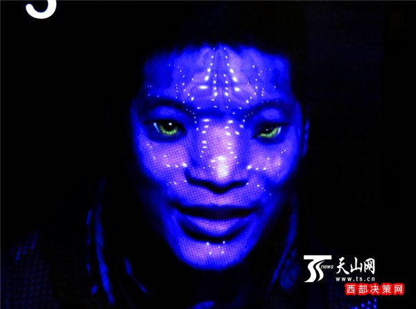 展品《阿凡達變形記》帶給觀眾的則是另一種奇妙。同樣是踩著一個光斑,觀眾面前的電子屏幕上就會呈現(xiàn)自己的頭像。這其實是展品在利用人臉識別技術(shù)以及計算機圖形算法,將觀眾的肖像捕捉下來,接著進行實時的五官拉伸變形。短短數(shù)秒,觀眾的頭像便被“異化”成電影《阿凡達》中那樣的外星人了。該作品曾作為20世紀(jì)??怂闺娪肮尽栋⒎策_》的交互式廣告,曾在美國紐約、洛杉磯等地推廣。