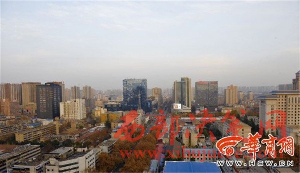 12月21日,連日霧霾的西安,經(jīng)過一場(chǎng)小雨空氣質(zhì)量明顯改善。下午5時(shí)許,在子午路一高層向東南方向望去,天空放晴,久違的藍(lán)天白云讓人心情大好。