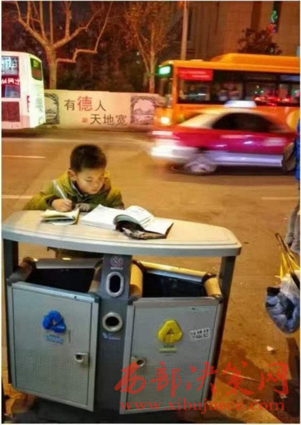 原標(biāo)題:寒夜中 這個(gè)8歲男孩趴在垃圾桶上寫作業(yè)