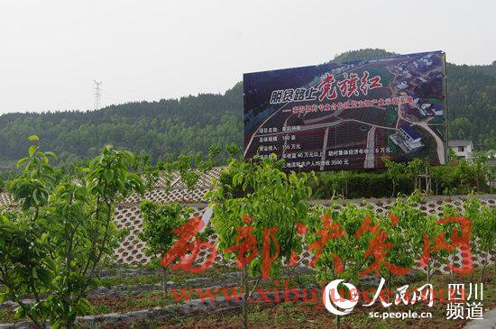 四川省巴中市巴州區(qū)曾口鎮(zhèn)秧田溝村黨支部產(chǎn)業(yè)示范基地內(nèi)樹立起“脫貧路上黨旗紅”的牌子。