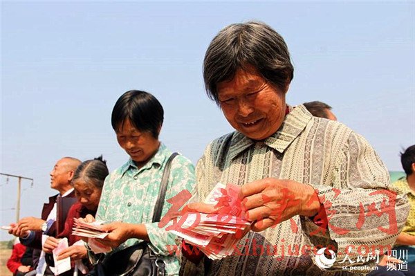 “賈婆婆,你還是數(shù)一下,看得不得少兩張喲!”5月19日,在綿陽市梓潼縣許州鎮(zhèn)欄桿養(yǎng)殖扶貧專業(yè)合作社(以下稱“欄桿合作社”)第一次分紅大會現(xiàn)場,73歲的賈國芳老人剛剛領(lǐng)到分紅金,一旁的村民向她開起了玩笑。賈國芳認(rèn)真數(shù)著手中的現(xiàn)金,數(shù)完后,她聲音有些顫抖的說:“21張,2100元,不會少,感謝黨和政府為我們貧困家庭著想!”她的話音剛落,雷鳴般的掌聲在現(xiàn)場響起。
