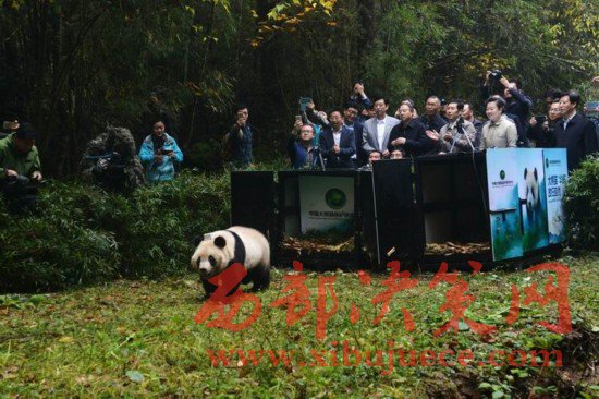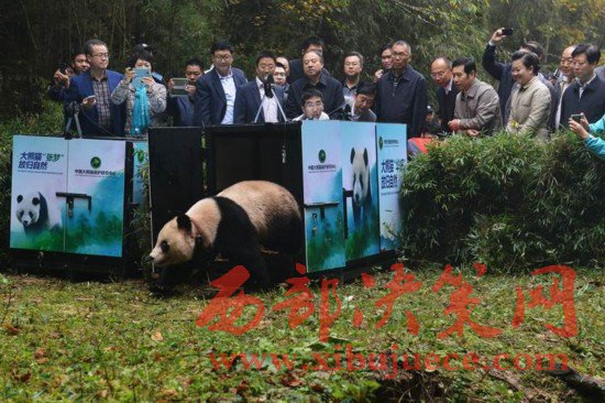 大熊貓“華妍”離開運(yùn)輸籠向野外走去