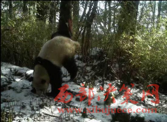 臥龍國家級(jí)自然保護(hù)區(qū)木江坪保護(hù)站紅外攝像機(jī)拍攝到的大熊貓?jiān)跇渖献鰳?biāo)記求偶