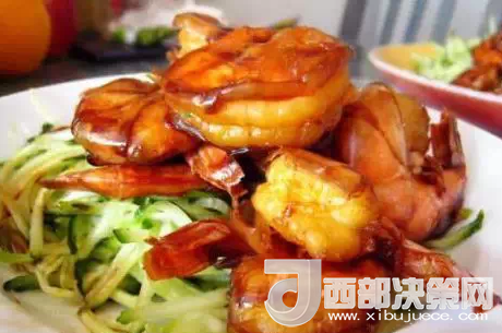 6、黃瓜擦絲,作為配菜,蝦倒在上面。