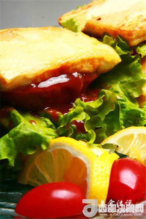 食材:北豆腐,西紅柿,檸檬,奶酪片,花葉生菜,酸黃瓜,法香,香油,生抽,醋,辣椒油,干淀粉,芝麻醬糖。