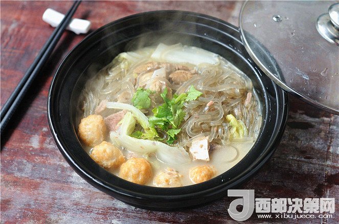 8.煮至丸子變大完全熟透,將排骨湯和排骨一起放入湯里