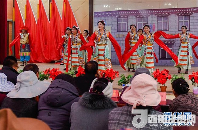 這是拉薩市城關(guān)區(qū)納金鄉(xiāng)塔瑪村慶祝百萬農(nóng)奴解放紀(jì)念日文藝表演現(xiàn)場(3月27日攝)。