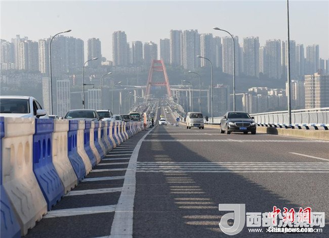 當(dāng)日,重慶開通全國(guó)首創(chuàng)環(huán)道內(nèi)順逆融合車道,不僅是向時(shí)間、空間要通行率,也是在環(huán)道形成的“順時(shí)針”和“逆時(shí)針”兩種通行方式,共同存在的“共享位移轉(zhuǎn)換道”基礎(chǔ)上提高車流量通行率。
