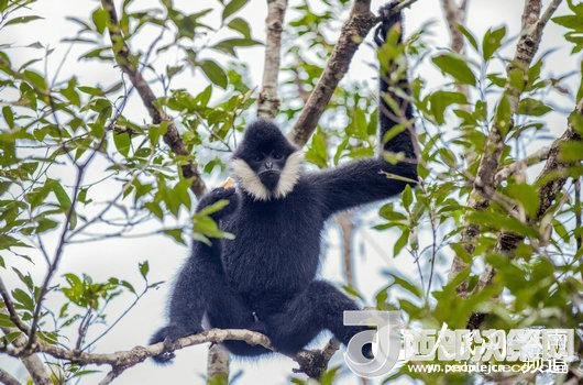 圖為普洱太陽河生態(tài)環(huán)境建設(shè)示范點內(nèi)的白頰長臂猿。(供圖)