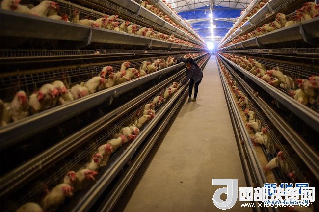在貴州畢節(jié)市七星關(guān)區(qū)五里坪村,當(dāng)?shù)剞r(nóng)戶在一個屬于精準(zhǔn)扶貧項(xiàng)目的養(yǎng)雞場內(nèi)工作(2015年11月15日攝)。新華社記者 歐東衢 攝