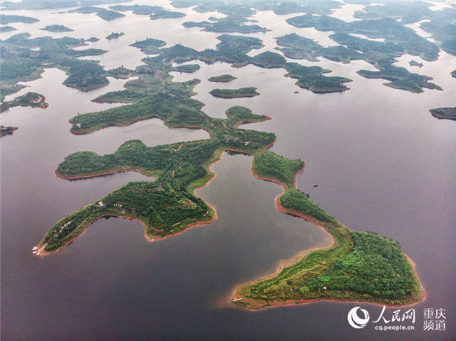 俯瞰長壽湖,十幾個(gè)首尾相接的島嶼呈現(xiàn)出繁寫的魏碑體“壽”字狀。羅嘉 航拍俯瞰長壽湖,十幾個(gè)首尾相接的島嶼呈現(xiàn)出繁寫的魏碑體“壽”字狀。羅嘉 航拍