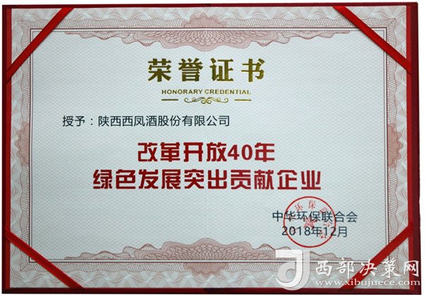 近日,在中華環(huán)保聯(lián)合會(huì)組織的“紀(jì)念改革開(kāi)放40年中國(guó)企業(yè)綠色發(fā)展成就主題活動(dòng)”中,陜西西鳳股份公司因在綠色發(fā)展、生態(tài)文明、環(huán)境保護(hù)、節(jié)能減排等方面的突出成績(jī),榮獲改革開(kāi)放40年“綠色發(fā)展突出貢獻(xiàn)企業(yè)”殊榮。標(biāo)志著該公司在實(shí)施綠色發(fā)展戰(zhàn)略、生產(chǎn)綠色產(chǎn)品、使用綠色技術(shù)等方面的卓越成果得到國(guó)家環(huán)保部門(mén)的充分肯定,達(dá)到了企業(yè)經(jīng)濟(jì)效益、社會(huì)效益、環(huán)境保護(hù)效益的有機(jī)統(tǒng)一。