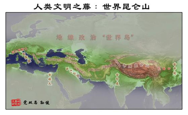 按照中國傳統(tǒng)的龍脈理論,“亞歐大陸的脊梁”也是“世界島”中央龍脈所在。由于人類古文明,包括古華夏、古印度、古波斯、古巴比倫,古希臘,皆源自“亞歐大陸脊梁”,所以也可稱其為“世界昆侖山”。著名的“絲稠之路”,也是從中國大秦嶺到歐洲阿爾卑斯山之路,也可稱之為“世界昆侖山之路”。過去,德國人首先“發(fā)現(xiàn)”了古老的“絲綢之路”。進入21世紀,英國人又率先以“絲綢之路”的視角,重新著述了“一部全新的人類史”。今天,中國人以“亞歐大陸的脊梁”為視野,將“世界島”連為一體,著述“一帶一路”,著述“大秦嶺到阿爾卑斯山之路”,著述“世界昆侖山之路”,也算是一個世界“地理新發(fā)現(xiàn)”。