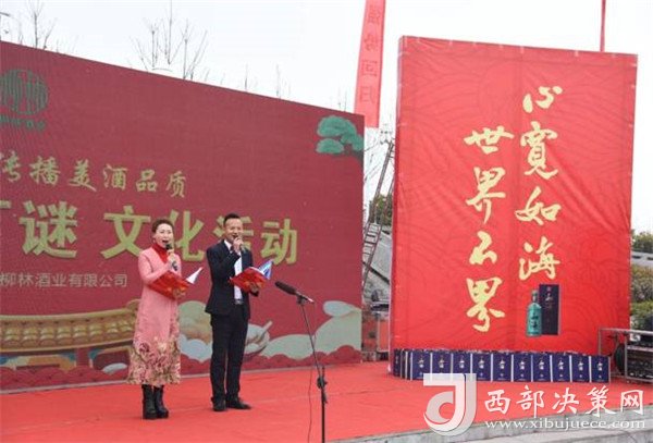 陜西柳林酒業(yè)有限公司副總經(jīng)理周峰發(fā)表講話并向鳳翔父老送上新春祝福和節(jié)日的問候。“三陽開國泰,美哉柳林酒。今天是正月十五,首先我代表柳林酒業(yè)董事長付小銅先生、總經(jīng)理柳林先生及全體員工給現(xiàn)場的父老鄉(xiāng)親、朋友們拜個晚年,祝各位家庭好、事業(yè)好、身體好心情好、運氣好、福氣好、財氣好、愛情好、朋友好、新的一年一切都好!柳林酒業(yè)主辦的以傳播柳林美酒品質(zhì)為主題的“鬧元宵有獎猜燈謎文化活動”,在此,對前來的各位父老鄉(xiāng)親,各界朋友表示衷心的感謝。本次猜謎活動獎品總價值15萬元,共設(shè)1000條謎語,只要猜中謎底,關(guān)注“柳林酒業(yè)”,即可獲得獎品。現(xiàn)場更有國家級評酒大師親臨現(xiàn)場,品柳林美酒,共同傳播美酒文化和歌舞表演環(huán)節(jié),相信大家一定會不虛此行,度過一個難忘的元宵佳節(jié)。