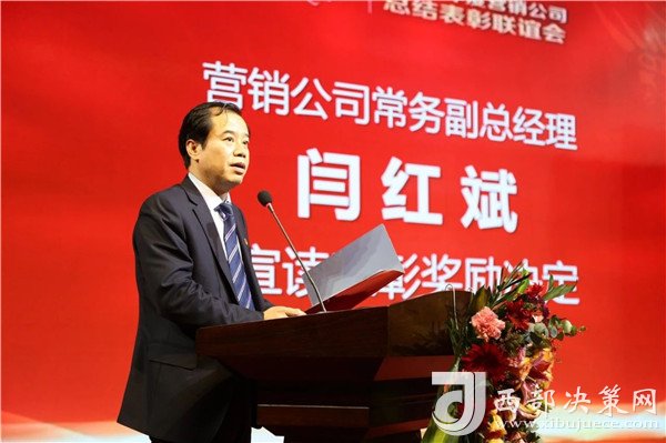 西鳳酒營銷公司常務(wù)副總經(jīng)理閆紅斌宣讀《關(guān)于對2018年度先進(jìn)單位、先進(jìn)個(gè)人給予表彰獎勵(lì)的決定》