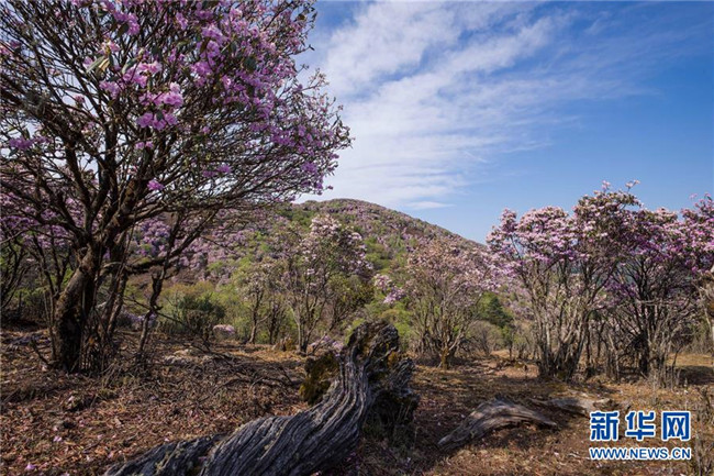 4月23日拍攝的龍頭山的野生杜鵑花。 近日,四川省攀枝花市鹽邊縣龍頭山十余萬畝野生杜鵑花盛開,吸引省內(nèi)外游客前來登山賞花。 龍頭山位于四川省攀枝花市鹽邊縣北部的紅寶苗族彝族鄉(xiāng)境內(nèi),這里的野生杜鵑花花期為2月至5月。 新華社記者 江宏景 攝