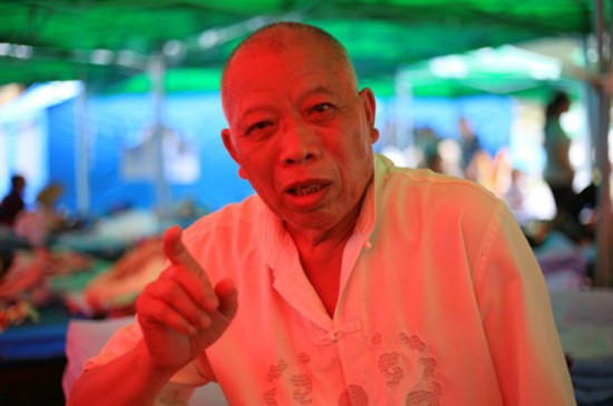 雙河鎮(zhèn)大水村70歲大爺李國付講述震后故事。(人民網朱虹 攝)