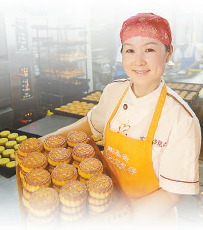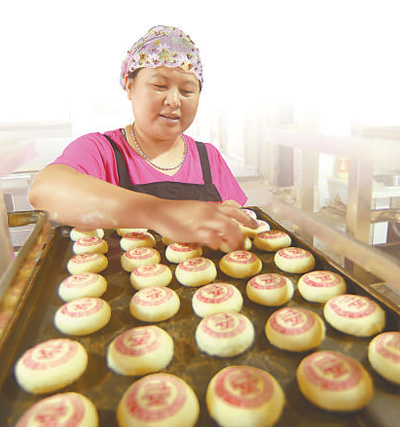 劉家果子鋪老板娘姚秀君在做糕點。林松 攝