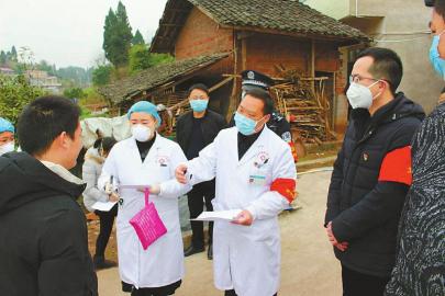 1月30日,在內(nèi)江市東興區(qū)白合鎮(zhèn)龍沖村,該鎮(zhèn)防控新型冠狀病毒感染肺炎疫情黨員先鋒隊(duì)隊(duì)員上門為群眾服務(wù),筑牢聯(lián)防聯(lián)控基礎(chǔ)。 李建明攝
