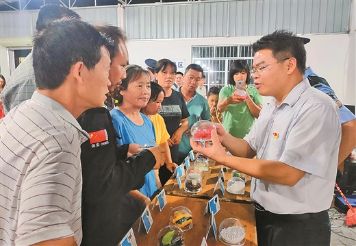 6月1日,上林縣鎮(zhèn)圩瑤族鄉(xiāng)組織黨員干部來到易地扶貧搬遷安置點扶貧車間,向搬遷群眾宣傳禁毒知識,強化他們的禁毒拒毒意識,樹立通過勤勞致富改善生活的理念。 藍 洲 潘小寶/攝