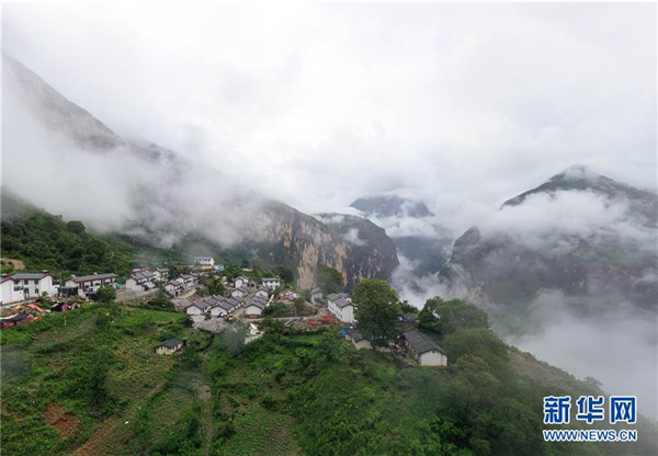 遠(yuǎn)眺雨后的四川省布拖縣阿布洛哈村易地扶貧搬遷集中安置點(diǎn)(6月30日攝,無人機(jī)照片)。新華社記者江宏景攝