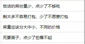 這與中餐分量多少、口味變化較難精準確定有關。比如一道東北亂燉的分量可能比一桌子廣式早茶的分量還大。因此,不少人很難在餐館里精準點餐。