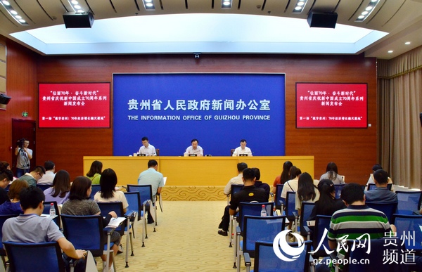 6月5日,“壯麗70年·奮斗新時代”貴州省慶祝新中國成立70周年系列首場新聞發(fā)布會在貴陽召開。新中國成立70年,貴州經(jīng)濟(jì)增長速度前所未有,全省生產(chǎn)總值從1949年的6.23億元到2018年的14806.45億元,人均地區(qū)生產(chǎn)總值由44元增加到41244元,貧困人口由1840萬減少至155萬……社會巨變,數(shù)字可見。