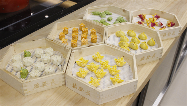 走出低谷,馬順莉認(rèn)定了這份工作,也立志要在這個(gè)崗位上發(fā)光發(fā)熱。馬順莉說:“我們有一個(gè)研發(fā)小組,二十幾個(gè)人,從1985年到現(xiàn)在,一直研發(fā)餃子宴。從當(dāng)時(shí)的十幾個(gè)品種,發(fā)展到現(xiàn)在,我們有318個(gè)品種的餃子;烹調(diào)工藝上,從蒸、煮,發(fā)展到蒸、煮、煎、炸、烙、烤、燴等多種烹調(diào)方法,真正體現(xiàn)了‘一餃一形一態(tài) 百餃百餡百味’的特點(diǎn)。”