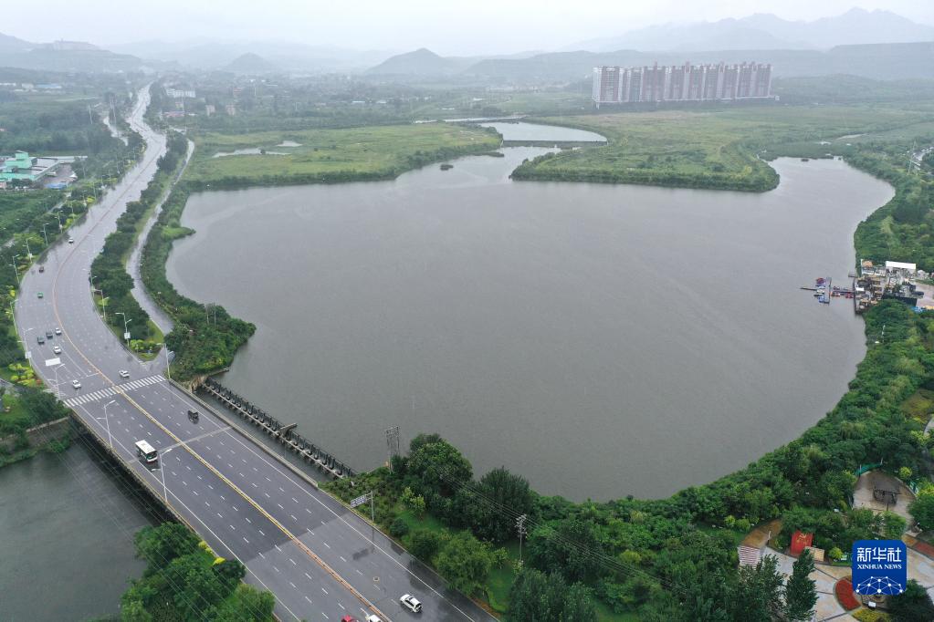 這是遼寧省鞍山市高新區(qū)火炬廣場(chǎng)前的南沙河水域(8月20日攝,無人機(jī)照片)。 新華社記者 姚劍鋒 攝