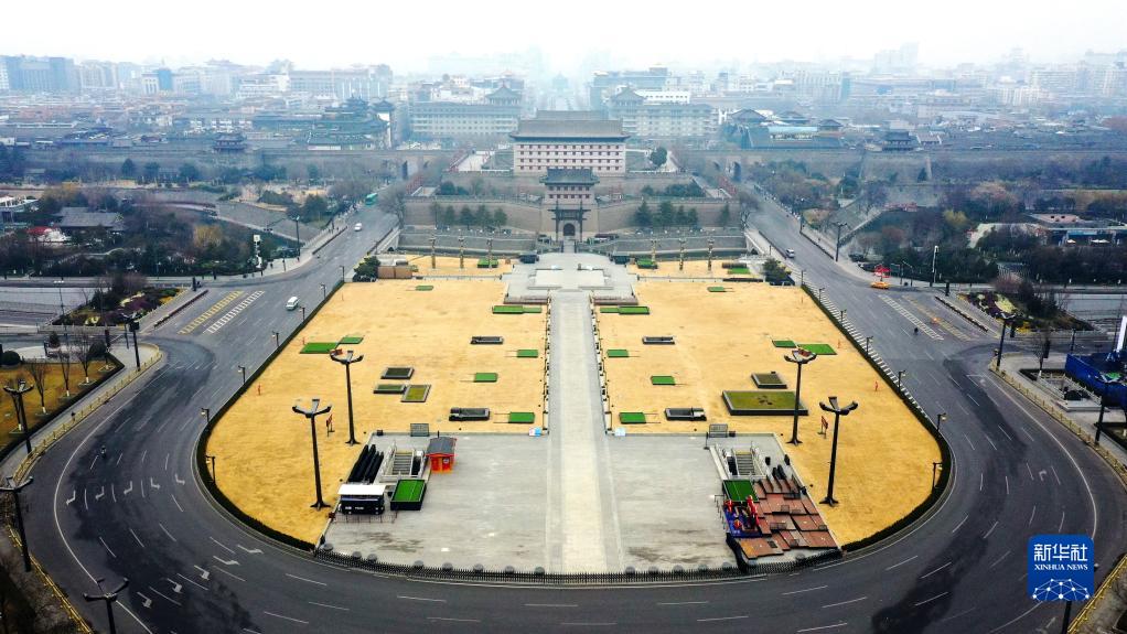 12月23日拍攝的西安永寧門外盤道(無(wú)人機(jī)照片)。新華社記者 劉瀟 攝