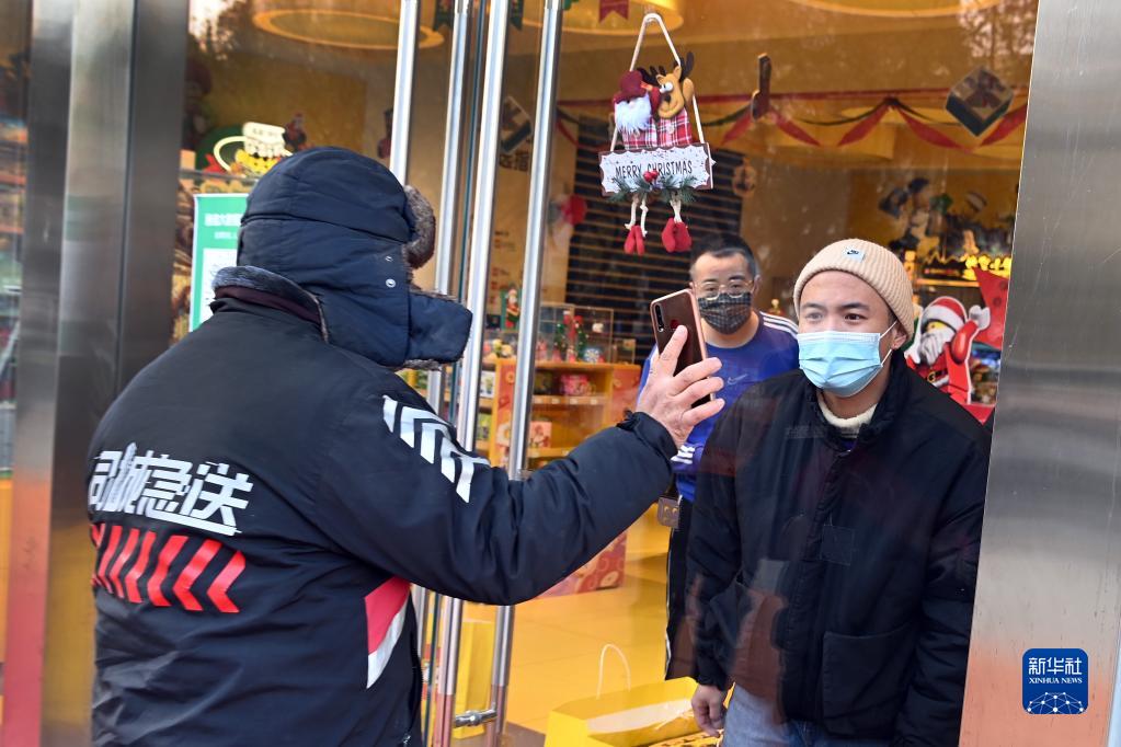 12月26日,配送員準(zhǔn)備領(lǐng)取需要配送的貨物。新華社記者 陶明 攝