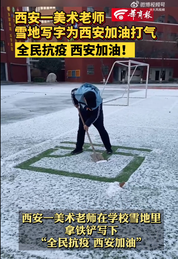 西安一美術(shù)老師在學校雪地里