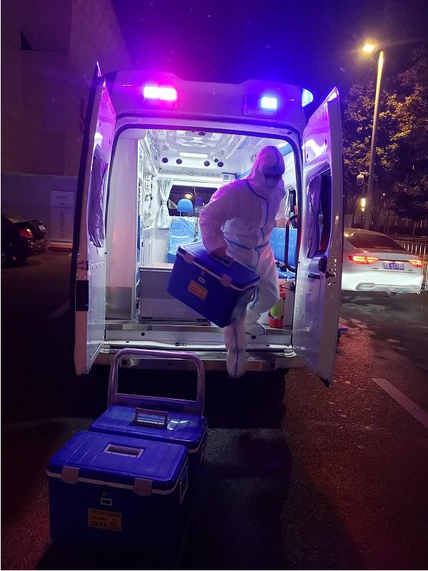 片刻休整后,劉鵬飛和隊(duì)員們又驅(qū)車(chē)投入轉(zhuǎn)運(yùn)核酸檢測(cè)樣本的任務(wù)……