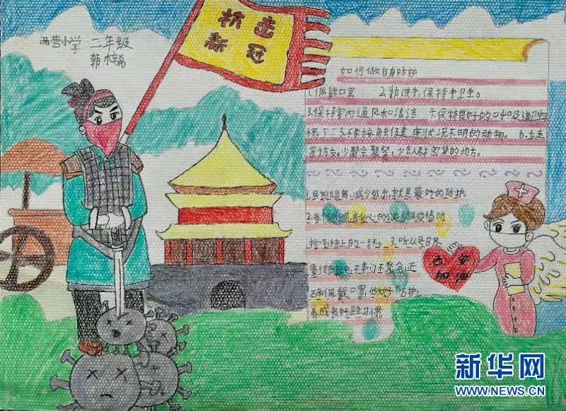 1月2日,西安市鄠邑區(qū)甘亭中心學(xué)校的孩子們用最自己的方式宣傳居家防疫知識(shí),用手中的畫筆表達(dá)他們對(duì)抗疫英雄的贊美,為抗疫一線的英雄加油!為西安加油!(張思思 趙影超 王展榮)