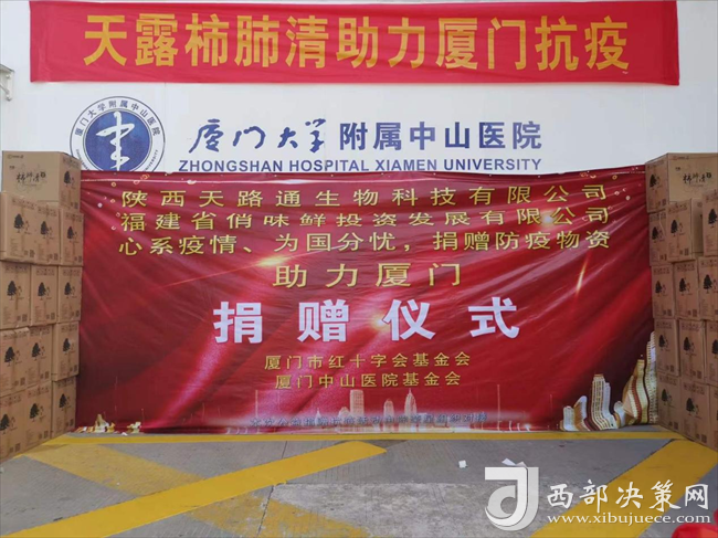 而這也并不是“天露柿肺清”口服液第一次出現(xiàn)在抗疫第一線。早在2021年9月29日,陜西天路通生物科技有限公司就為廈門中山醫(yī)院捐獻(xiàn)過一批抗疫物資,捐贈(zèng)了價(jià)值20多萬“天露柿肺清”口服液作為抗疫物資,支援中山醫(yī)院的一線醫(yī)護(hù)人員們,助力廈門抗疫。當(dāng)時(shí)正值廈門中山醫(yī)院抗擊新冠肺炎疫情的緊要關(guān)頭,天路通生物科技有限公司及時(shí)伸出援助之手,無償捐贈(zèng)抗疫物資,為打贏疫情防控阻擊戰(zhàn)增強(qiáng)了信心和力量。病毒無情,八方友愛,仁者愛人,彰顯出企業(yè)的愛國情懷和社會(huì)責(zé)任,展現(xiàn)了人間大愛,脈脈溫情。