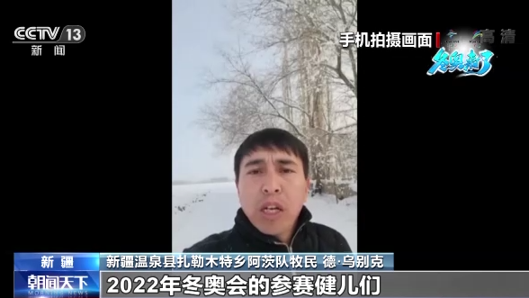 新疆溫泉縣扎勒木特鄉(xiāng)阿茨隊牧民 德·烏別克:即將在首都北京舉辦的2022年冬奧會的參賽健兒們,在我們家鄉(xiāng)進行了為期一個半月的訓練,在這么冷的天氣中,他們堅持訓練真的很辛苦,奧運健兒們啟程參加冬奧會之日,我們騎著駿馬揮舞著國旗,以不舍的心情為他們送行,祝他們?nèi)〉煤玫某煽儭?/p>