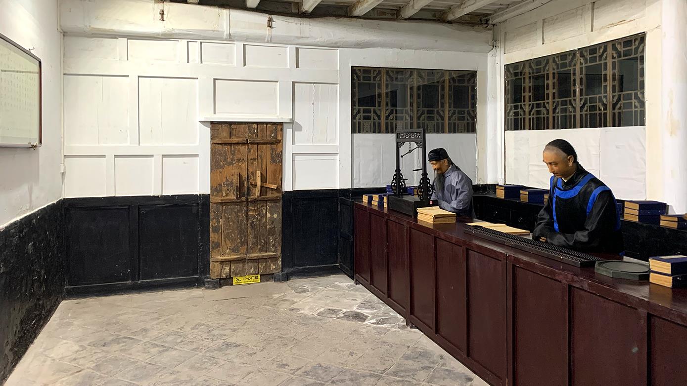 △日昇昌記內(nèi),還原了票號當年對外營業(yè)的柜房環(huán)境。(總臺央視記者 段德文拍攝)