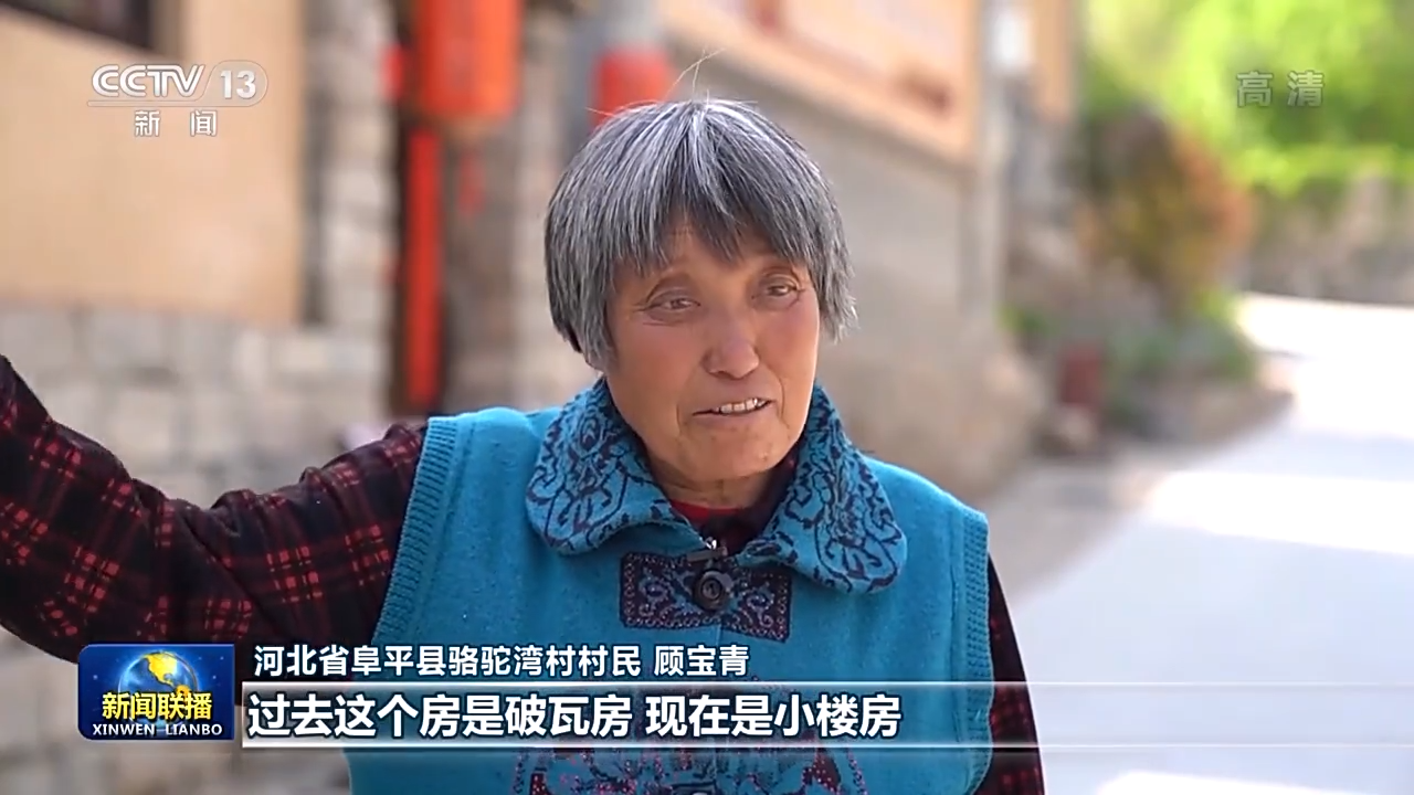 河北省阜平縣駱駝灣村村民 顧寶青:過去這個(gè)房是破瓦房,現(xiàn)在是小樓房。過去路是土路,現(xiàn)在是柏油路。日子越過越紅火,感謝黨中央的好政策。