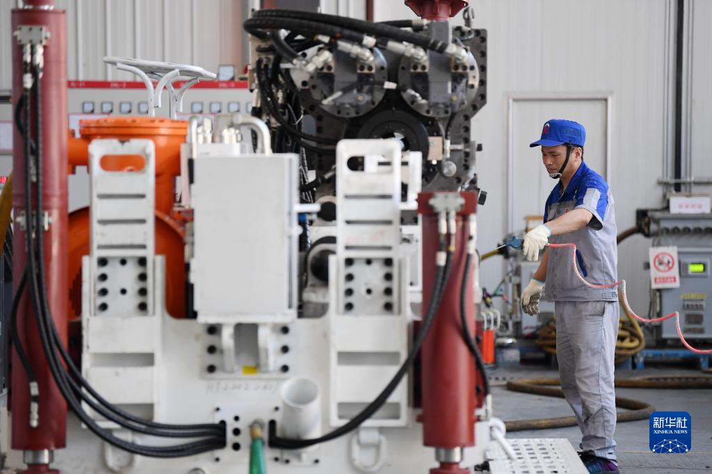 6月17日,在位于秦創(chuàng)原總窗口所在地陜西省西咸新區(qū)的陜西太合智能鉆探有限公司,工人準備對智能定向鉆機進行性能調試。 新華社記者 李一博 攝