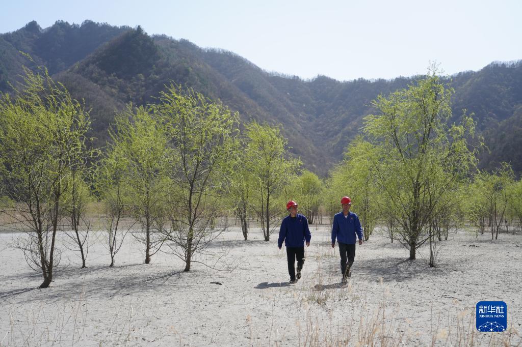 4月7日,金堆城鉬業(yè)集團有限公司工作人員在經過生態(tài)治理后的木子溝尾礦庫內巡查。 新華社記者 邵瑞 攝
