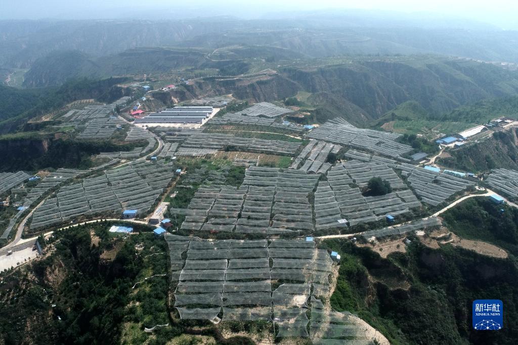 2020年7月29日拍攝的陜西省延安市延川縣梁家河村山地蘋果園(無人機照片)。 新華社記者 張博文 攝