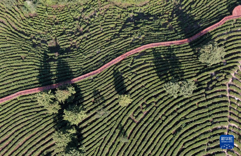 這是6月14日拍攝的陜西省平利縣老縣鎮(zhèn)蔣家坪茶園(無人機照片)。 新華社記者 李一博 攝