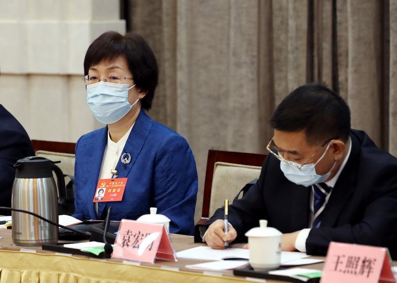 按照中國共產(chǎn)黨第二十次全國代表大會統(tǒng)一安排,陜西省代表團10月15日在住地召開全體會議。左一為路生梅代表。