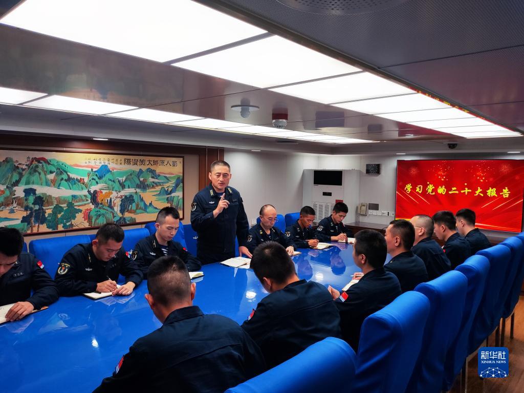 中共中央總書(shū)記、國(guó)家主席、中央軍委主席習(xí)近平24日下午出席軍隊(duì)領(lǐng)導(dǎo)干部會(huì)議時(shí)發(fā)表的重要講話,在解放軍和武警部隊(duì)引起強(qiáng)烈反響。這是東部戰(zhàn)區(qū)海軍護(hù)衛(wèi)艦支隊(duì)迅速組織官兵學(xué)習(xí)習(xí)主席重要講話(10月25日攝)。新華社發(fā)(劉祎瑋 攝)