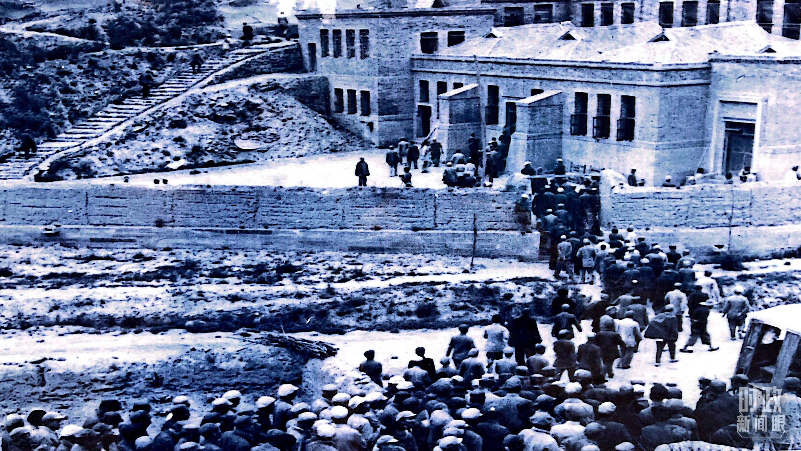 △中共七大代表進入會場的老照片。(總臺央視記者盧心雨提供)