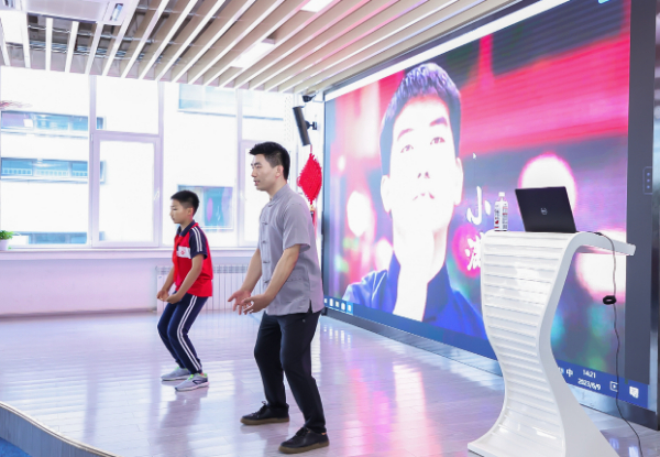作為示范活動(dòng),北京理工大學(xué)附屬實(shí)驗(yàn)學(xué)校除了開展主題日活動(dòng),還開設(shè)了其他特色課程,舉辦中醫(yī)藥游園會(huì),吸引眾多學(xué)生參與?;顒?dòng)現(xiàn)場(chǎng),非遺傳承人代金剛手把手指導(dǎo)同學(xué)們練習(xí)八段錦。在中醫(yī)藥文化知識(shí)角,一名同學(xué)正跟著屏幕上的動(dòng)作指引練習(xí)五禽戲。除了智能互動(dòng)系統(tǒng),學(xué)校還專門布置中醫(yī)藥展覽、藥物標(biāo)本、器具模型等,讓同學(xué)們時(shí)時(shí)感受多樣的中醫(yī)藥文化。
