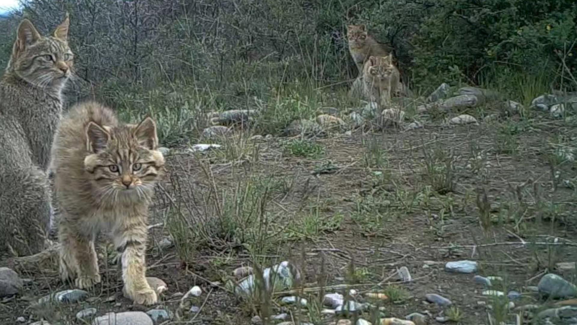 照片中的“大萌貓”一張是漫步在草叢中的荒漠貓,另一張是行走在樹叢中的雪豹。二者都是國(guó)家一級(jí)保護(hù)野生動(dòng)物。