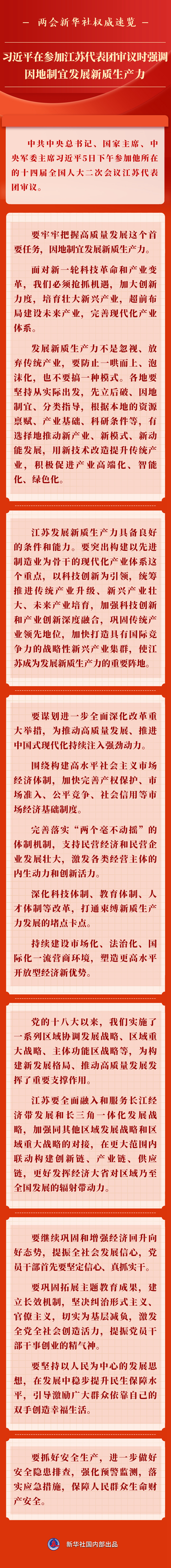 兩會新華社權(quán)威速覽丨習(xí)近平在參加江蘇代表團(tuán)審議時強調(diào) 因地制宜發(fā)展新質(zhì)生產(chǎn)力